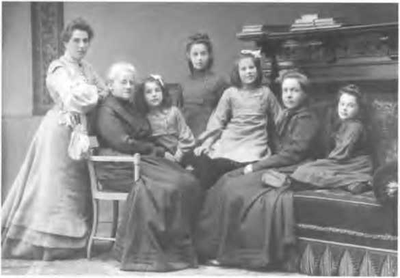Слева направо: кн. Зинаида Петровна Львова, Т. Д. Колосовская (преподаватель), княжны Зоя, Елена, Наталья, Мария Евгеньевна Львова, Елизавета. Пожва