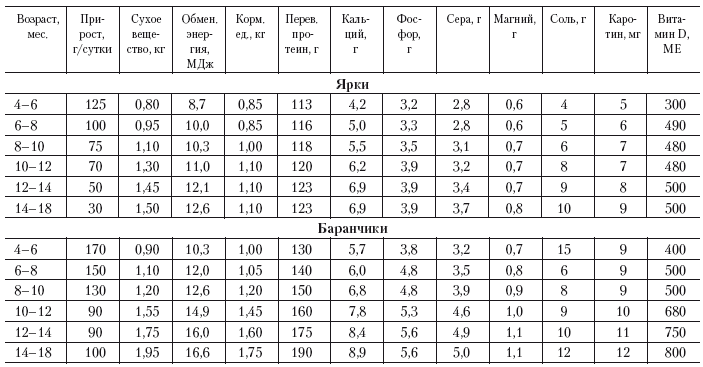 Нормы кормления молодняка мясо-шерстных пород на 1 голову в сутки