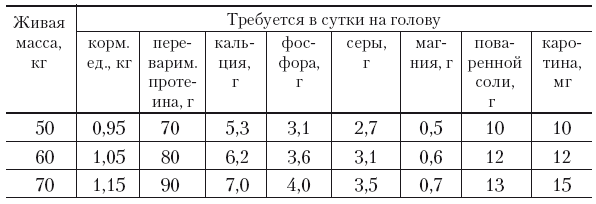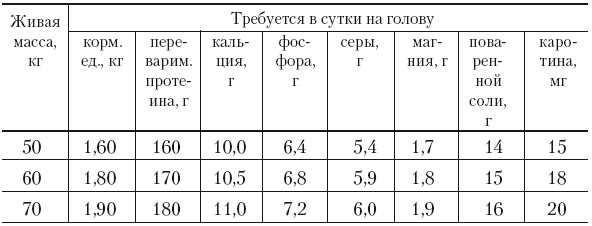 Нормы кормления холостых и суягных маток в первую половину суягности