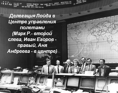Мы пригласили представителей обеих фирм для знакомства и определения возможных сфер интереса. Ллойд, принимавший активное участие в страховании рисков по космическим проектам, был готов нам помогать при условии его участия в страховых пулах. Такое участие было и в интересах департамента авиационно-космического страхования Ингосстраха, который не мог самостоятельно помочь нам. После встречи с нашими техническими специалистами и космонавтами и посещения Центра управления полетами англичане подтвердили свою заинтересованность, сообщив, что они решили у себя выделить отдельное подразделение во главе с присутствующим Марком Р. (Фамилию запамятовал).