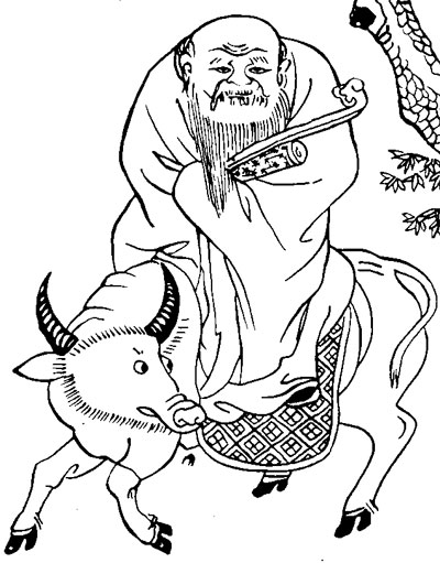 Лао-Цзы верхом на буйволе покидает пределы Китая. Средневековая миниатюра