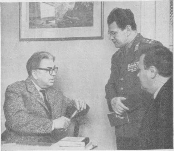 Л. Леонов беседует с М. Алексеевым и С. Борзуновым