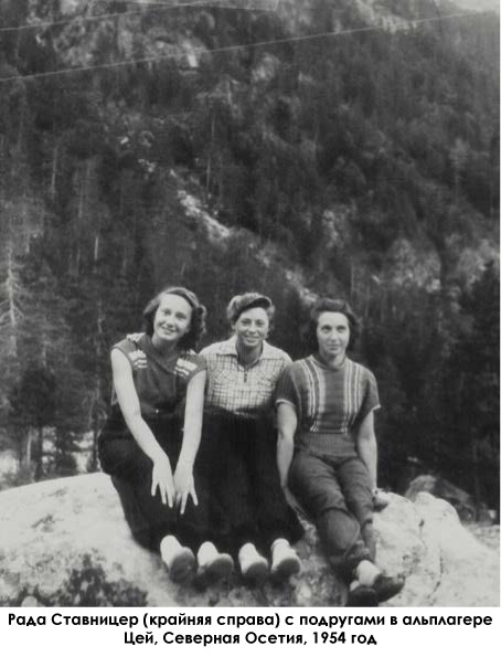 Мало кто знает, что альпинистское мастерское звание у нее было третьим. Бог весть, как сложилась бы ее судьба, не будь войны. Пожалуй, ни у кого в семье не было столько силы воли, характера и потенциальных талантов и задатков, как у Рады. Ум у нее был цепкий, потом она уже в Одессе окончила географический факультет университета, но таким географом-гидрологом, как мечталось, стать не удалось. Упал железный занавес, океанские экспедиции были больше разведывательного характера, так что пришлось идти перекладывать бумажки в проектный институт. Тоска. Но у нее к тому времени уже было окно в иной мир.