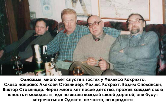 Помимо запойного чтения, в семье было еще одно увлечение – музыка. Все дети унаследовали от матери абсолютный музыкальный слух, но по возрасту учиться музыке получилось только у троих младших. Виктор избрал виолончель, Серафима осваивала фортепиано, а Леша с шести лет был занят скрипкой. Так что всем судьба предопределила учиться в знаменитой школе имени Столярского. Школа эта была особой не потому, что специализированная, музыкальная. Там как-то естественно подобрался едва ли не лучший в Одессе учительский коллектив. Детей не натаскивали, а учили, в том числе и думать, размышлять, чувствовать. Здесь просится такой пример.