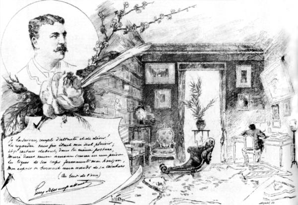 Рабочий кабинет Мопассана. Рисунок из газеты «Ля Журнэ» от 15 дек. 1885 г. Фото Ж.-Л. Шарме.