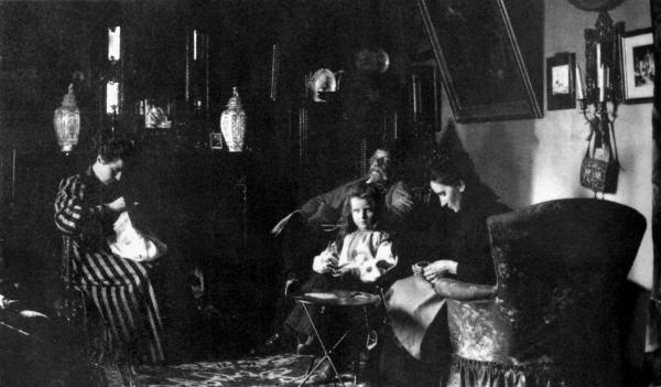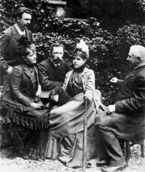 Ги де Мопассан, мадам де Брассья, Мельхьор де Вогю, мадам Стро и генерал Анненков. Июль 1888 г. Париж, Б.Н. Эстамп. Фото Б.Н.