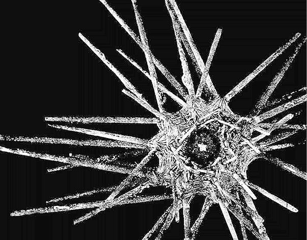 Томпсон в “Глоссарии греческих рыб” идентифицировал безымянного глубоководного морского ежа как Cidaris cidaris, и справедливо. Остатки представителя именно этого вида я держал в руке. Аристотель пишет, что этот морской еж “применяется иногда [как средство] от затрудненного мочеиспускания”. (Не думаю, что и теперь его так используют.) Впрочем, Аристотеля мало интересует полезность животного: интереснее, почему у животного такие длинные иглы.