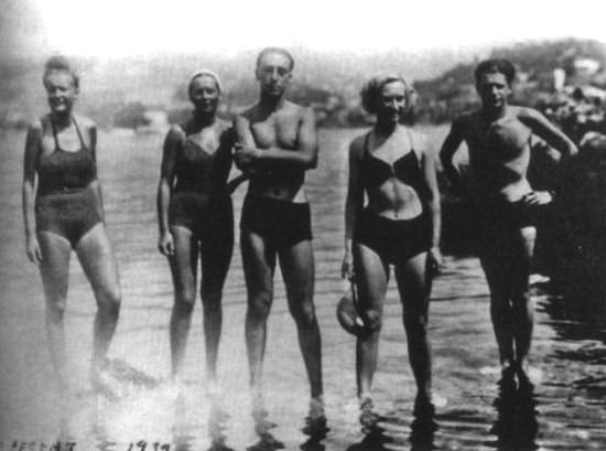 Ромен Касев в Кап-Ферра. Справа — Сильвия и Рене Ажиды. 1939.