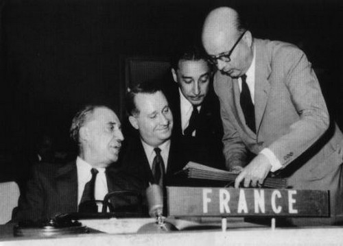 Слева направо: Анри Опно, Пьер Ордонно, Ромен Гари, Шарль Люсе.