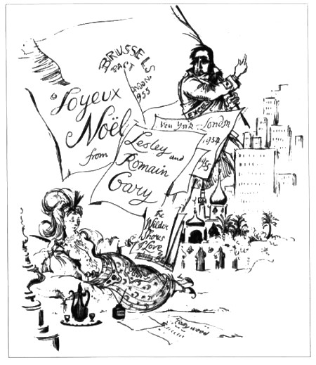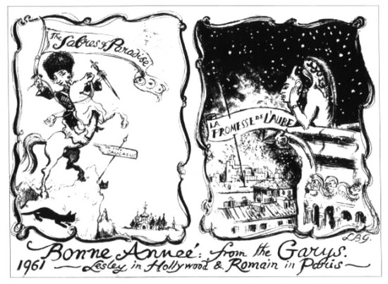 Новогодняя поздравительная открытка: Лесли в Голливуде, Ромен в Париже.