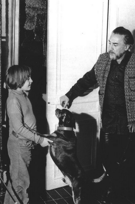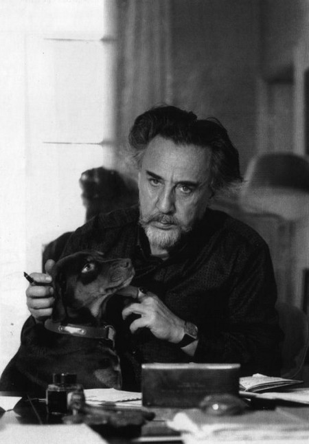 Гари в своем рабочем кабинете на рю дю Бак с таксой Панчо.
