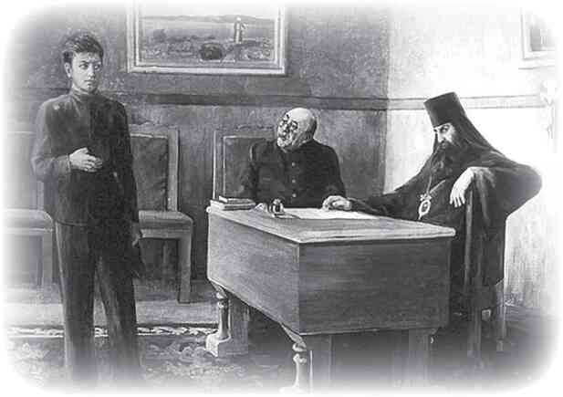 Оказывается, в семинарии у новоявленного ученика — замкнутого, неконтактного, капризного, резкого, дерзкого — якобы возникают конфликты с воспитателями. Возникают из-за протеста против издевательского режима и иезуитских методов воспитания.