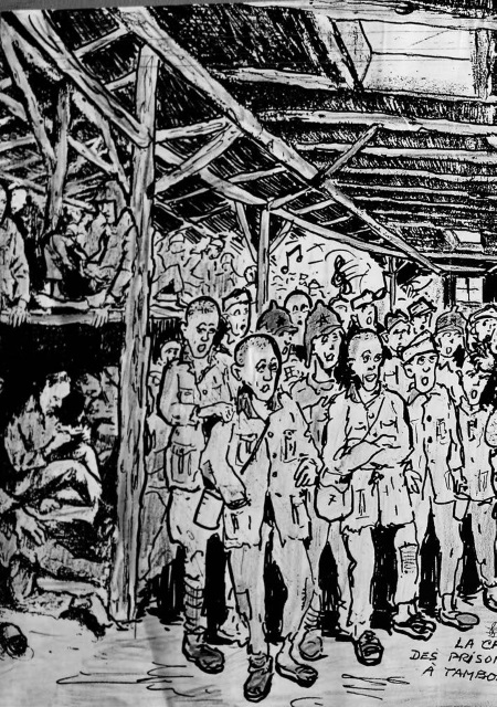 Хор заключённых тамбовского лагеря под управлением Шарля Митчи. Рис. А. Мюллера