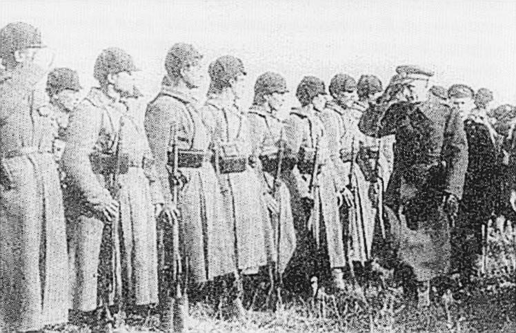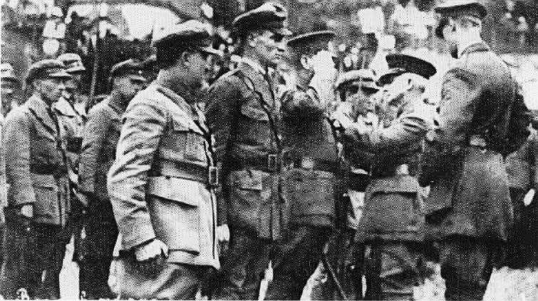 Представители английского командовании вручают награды чешским офицерам и солдатам. Владивосток, 1918 г.
