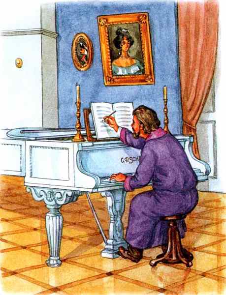 — Я вот вас на конюшню! — крикнул композитор и кинулся в дом. Сначала он хотел прямо на нотной бумаге обозначить длину звучания и высоту колокольного звона. Хотел распределить по тактам и нотным строчкам вой толпы, храп лошадей, ругань поляков, что пришли на Русь во времена Годунова. Но потом и бумагу, и карандашик смахнул на пол, откинул крышку фортепиано и взял одновременно двумя руками страшный и гневный аккорд. Тяжко зарокотали под пальцами левой руки басы бояр. Тенорком запричитали под правой рукой бабы с ребятишками…