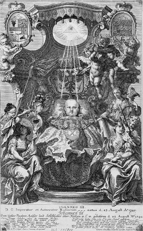 Иоанн Антонович в колыбели Гравюра Иоганна Христиана Леопольда. 1740 г.