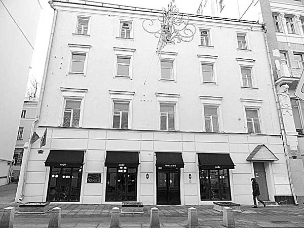 Далее по нечетной стороне Б. Дмитровки следует четырехэтажный дом без видимого номера. Это здание также относится к дому № 5/7 под наименованием «строение 5». Оно вплотную прижимается к дому № 9, и хорошо мне знакомо. Хотя это здание не имеет архитектурной ценности, однако, как помещение на одной из центральных улиц Москвы, обладает конкретной и очень большой материальной стоимостью. В настоящее время все вывески с этого дома сняты, а сравнительно недавно на его первом этаже красовалась конкретная вывеска – «МОЛОКО». Весь первый этаж этого здания был занят магазином, торгующим молоком и молочными продуктами. Естественно в те годы я и понятия не имел, что до революции этот магазин принадлежал купцу А. Чичкину – владельцу сотней подобных магазинов по всей России, продавцы которых каждое утро выходили на улицы в белоснежных халатах и выливали в сточные канавы вчерашний товар.