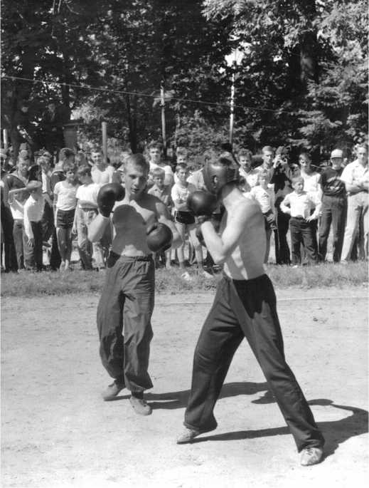Физподгтовка: матрос и лейтенант боксируют на День Нептуна. Парусное. Середина 90-х годов. (Фото из архива автора)