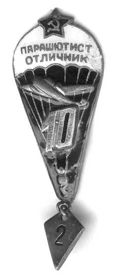 Знак «Парашютист отличник». Одетый на обычную матросскую форму, он приводил в недоумение не один военный патруль. (Из архива автора)