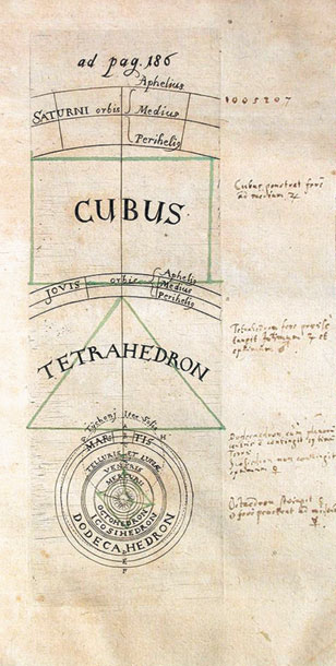 Согласно представлениям Кеплера, каждая планета соответствует определенному платоновому телу и его космической геометрии. Марс – это додекаэдр, Венера – икосаэдр, Земля – сфера, Юпитер – тетраэдр, Меркурий – октаэдр, а Сатурн – куб.