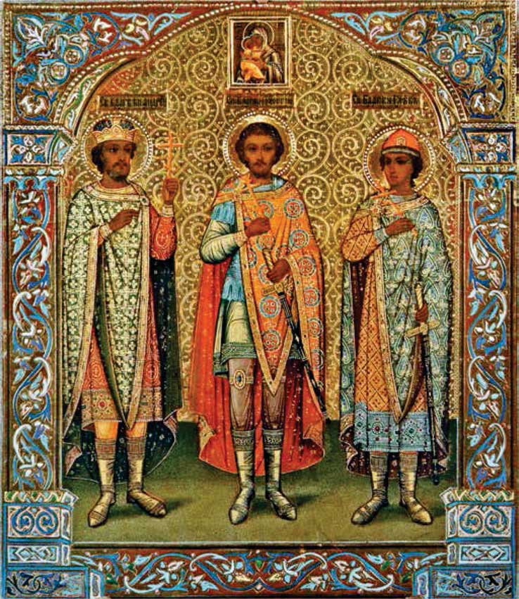 Святые владимирские князья Андрей Боголюбский, Георгий Всеволодович и Глеб Андреевич. Икона XIX–XX вв.