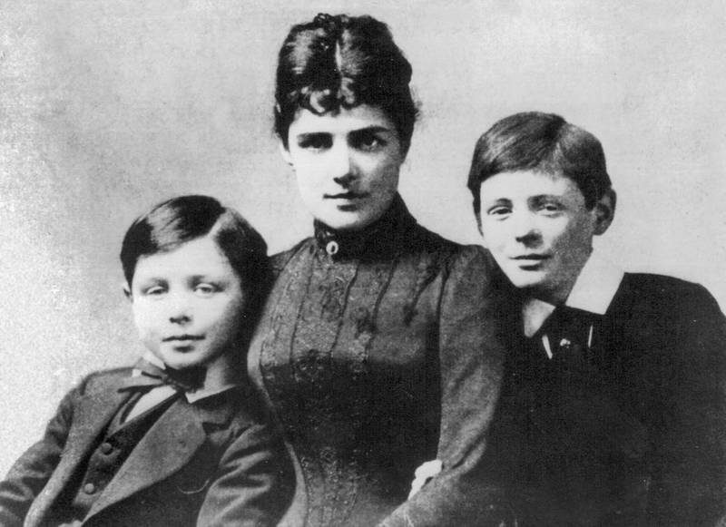 Слева направо: Джон (Джек) Спенсер-Черчилль в возрасте 7 лет; леди Рэндольф Спенсер-Черчилль (Дженни) в возрасте 33 лет; Уинстон Спенсер-Черчилль в возрасте 13 лет; снимок сделан в Бленхеймском дворце в 1887 году.