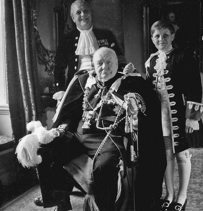 Уинстон Черчилль со своим сыном Рэндольфом и внуком Уинстоном. 195? г.