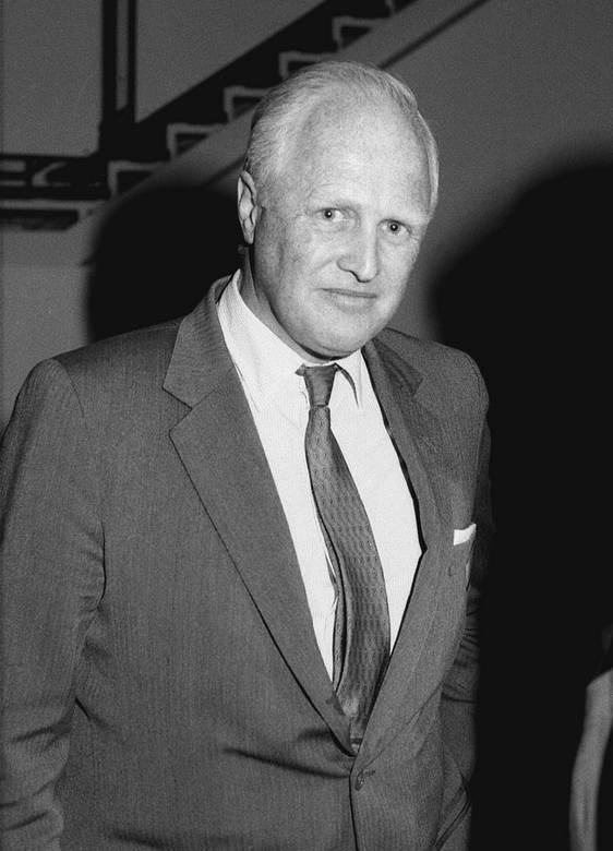 Внук У. Черчилля Уинстон Спенсер Черчилль на пресс-конференции в Лондоне. 1991 г.