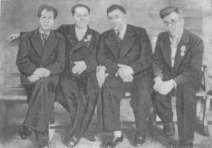 Члены подпольного обкома (справа налево): Е. Степанов, П. Ямпольский, Н. Луговой и секретарь Симферопольского подпольного горкома партии И. Козлов. 1944 г.