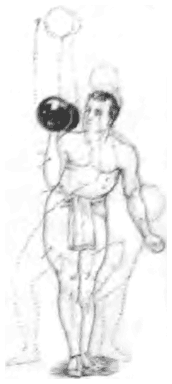 Существенное различие между выжиманием и выкручиванием заключается в том, что при выжимании тяжесть поднимается вверх, а при выкручивании положение ее в пространстве почти что не изменяется, а тело, сгибаясь и рука выпрямляясь, так сказать, подходят под вес, после чего атлет попросту выпрямляется; движение при выкручивании то же самое, как если корпус прижимается к стене, а рука его от стены отталкивает. Тренировка для выжимания та же, что и для выбрасывания.