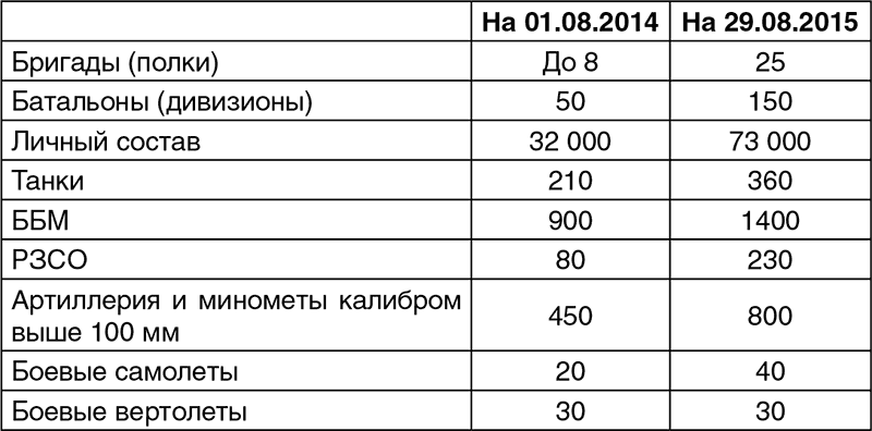 С другой стороны, значительная часть боевой техники была утеряна, а летом-осенью 2015 года подлежали демобилизации солдаты и сержанты, получившие реальный опыт в боевых действиях летом 2014 года.