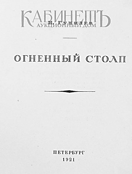 Обложка последней книги стихов Н.С. Гумилева «Огненный столп», посвященной А.Н. Гумилевой