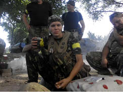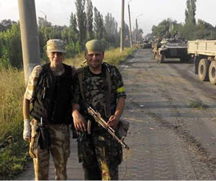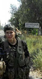 Незабаром начальником штабу батальйону став В’ячеслав Власенко — «Філін». Почали формувати штат. Я потрапила у розвідвзвод. Нашу групу з шести осіб готували як агентурну розвідку. В перших числах липня ми поїхали в район щойно звільненого Слов’янська. Там буквально доба пройшла після звільнення, скрізь міни ще були, в «зеленку» було страшно ходити, щоб не підірватися. В туалет і то не можна було нормально сходити — хлопці ставали колом спиною до нас, і нам доводилось просто на асфальт справляти… Що вразило у Слов’янську — тиша. Побита техніка, зірвані дроти, будинки розбиті, й людей немає. Їдеш — і холодок по спині…