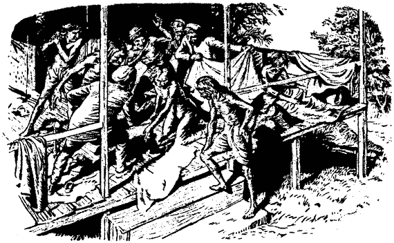 На это предложение лавочнику пришлось через силу согласиться. Поэтому десять женщин из группы спали в лавке — там была одна комната с запиравшейся дверью, а десять мужчин легли в ряд на помосте с садху в середине.