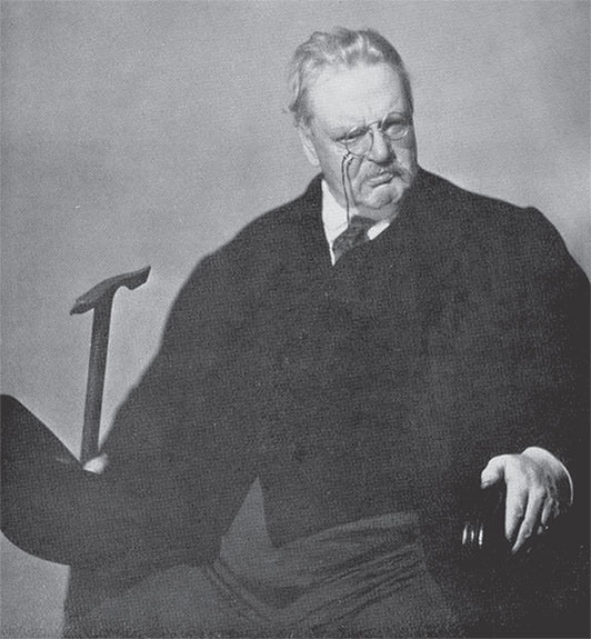 Третий знаменитый парадоксалист того времени – Гилберт-Кийт Честертон (1874–1936). Он был и похож, и не похож на первых двух; многому у них научился, но шел своим путем. Он был высок, упитан, любил по-простому закусить и выпить пива, звонко смеяться. Один биограф сравнивал его с Дон Кихотом, другой – с Фальстафом. Казалось бы, между ними нет ничего общего… Или общий для них – Честертон?