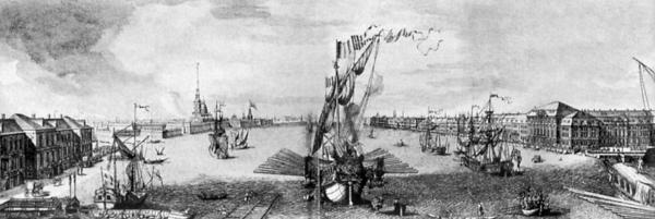 Санкт-Петербург во времена Петра Великого. Берега Невы, Адмиралтейство и Академия наук. Национальная библиотека, эстампы, фото Б.Н.