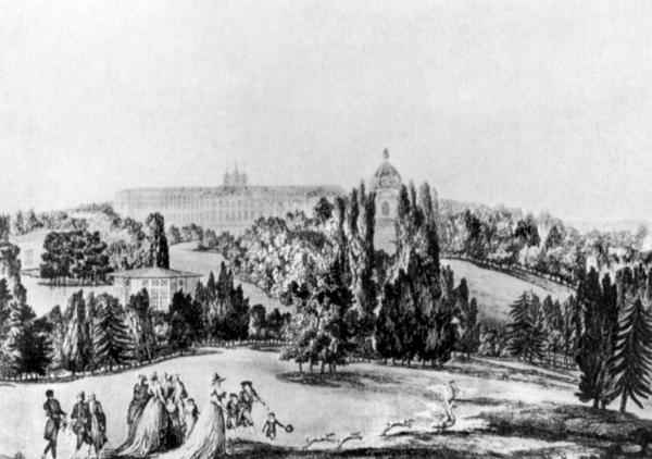 Большой дворец и парк в Царском Селе. Гравюра Дамана-Дематре.