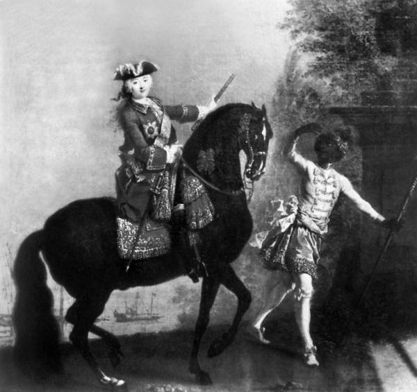 Елизавета Петровна, русская императрица (1741–1761). «Портрет цесаревны Елизаветы Петровны на лошади и с мавром». Картина, написанная в 1743 году Георгом Кристофом Гротом (Georg Christoph Grooth, 1716–1749). Деталь. Живопись на холсте, 85?68,3 см. Москва, Третьяковская галерея.