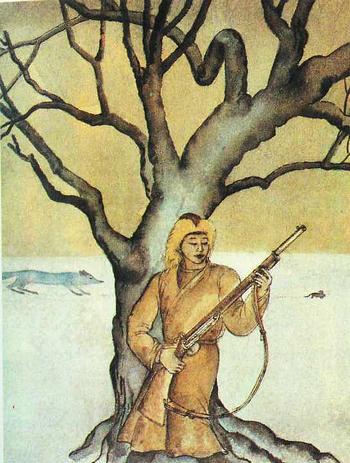Собак Амангельды любил и понимал. Собака — друг, а на охоте — лучше друга. Года два назад двоюродный брат Кушумбек подарил Амангельды щенка. В ту весну он был слаб, привязчив и бестолков, но Амангельды неизменно брал его с собой в степь, терпеливо приучал к сворке, к команде, охотился на тушканчиков, сурков а мышей, а по первой пороше пустил за зайцем.