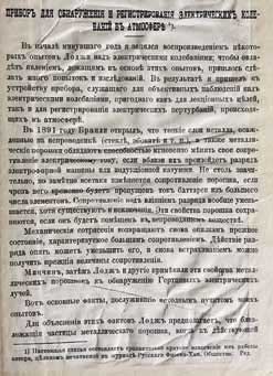 Статья А. С. Попова «Прибор для обнаружения и регистрирование электрических колебаний в атмосфере». Оттиск 1896 г.