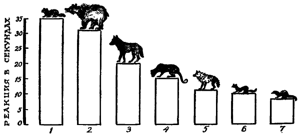 Отзвуки древних времен. Испытывая на лисицах и песцах ежемесячно в течение года пахучие вещества, мы обнаружили, что продолжительность реакции в разные сезоны года различна. Она поднималась весной, это понятно: весеннее волнение крови — гон. Но почему она устремлялась вверх осенью?