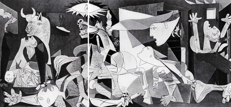Пикассо хотел посвятить картину испанскому городу, подвергшемуся нацистской бомбардировке, передав ее испанскому павильону на Международной выставке искусства и техники в Париже в 1937 году. "Герника" - результат творческого исследования, начатого художником в то время, когда он сблизился с сюрреалистами, в сочетании с другим сильнейшим интересом, мифотворчеством. Эти два источника вдохновения помогают понять монументальный характер многих произведений Пикассо, созданных им после тридцатых годов, как новаторский художественный монументализм, в котором ссылки на современность (чернобелое изображение напоминает фотографии сцен гражданской войны в Испании) соседствуют с великими историческими примерами живописи "большого формата", от комнат Ватикана работы Рафаэля (ассоциации с которыми порождают многие из фигур, изображенных на картине) до искусства тринадцатого века, с его триумфальным шествием смерти по средиземноморскому побережью.