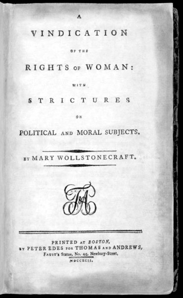 Первое американское издание трактата «Защита прав женщин» (1792)