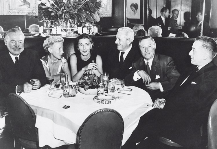 В клубе «Сторк» в Нью-Йорке, слева направо: Эрнест Хемингуэй с женой, миссис Леланд Хейворд, Спенсер Трейси, Джордж Джессель и Леланд Хейворд, 1954 год.