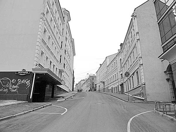 Новый дом № 3 выглядит несуразно большим и совсем не по месту на подъеме Печатникова переулка. Помнится, раньше за бабушкиным домом, прижимаясь вплотную, одним этажом выше поднимался старый дом № 3, за которым следовал дом № 5, еще приподнимаясь на один этаж. На вершине переулка этажность здания зрительно уже не воспринималась так резко. Миниатюрный дом «с кариатидами» П. Сысоева (№ 7) не нарушал логику предшествующего ступенчатого порядка домов, поднимающихся в гору.