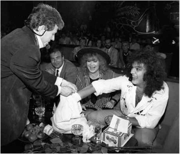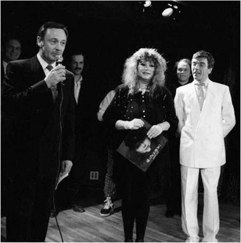 Валерий Сухорадо, гендиректор фирмы «Мелодия», вручает Пугачёвой «Золотой диск», 1985