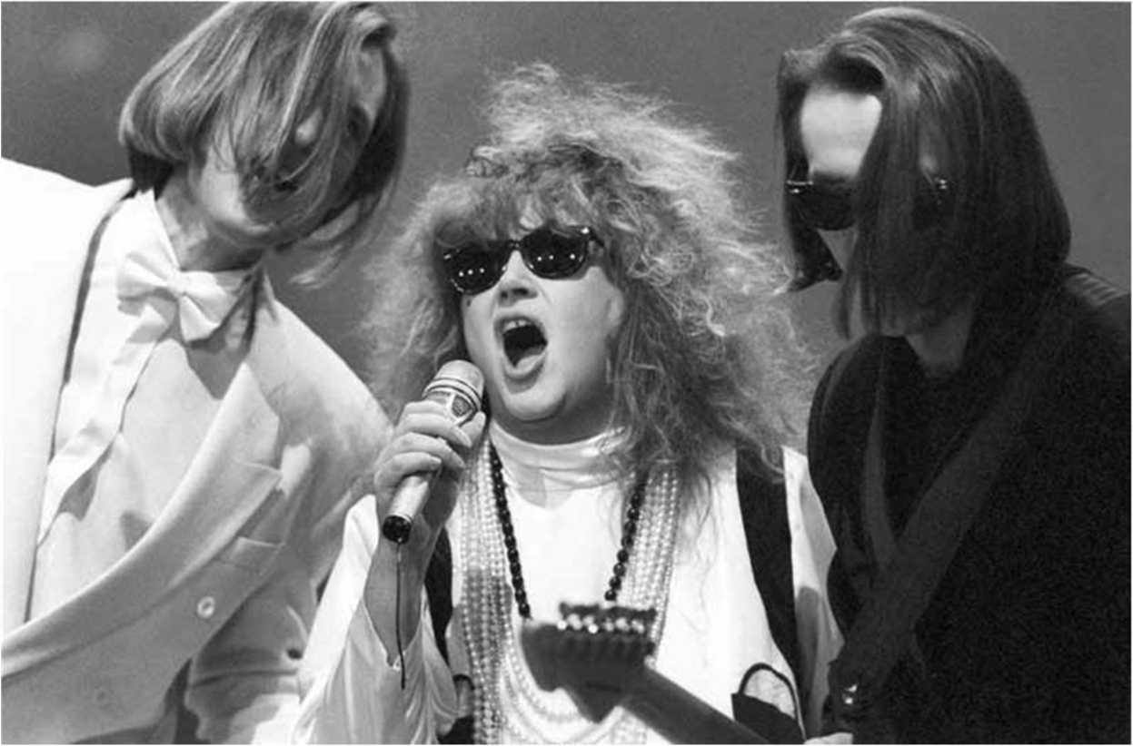 Алла Пугачёва и немецкий музыкант Удо Линденберг на пресс-конференции, 1988