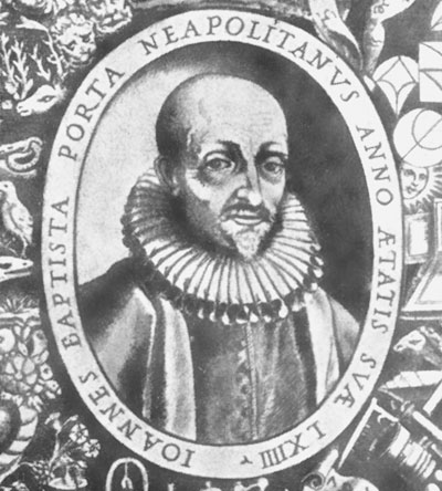 Джованни Баттиста Делла Порта (1535–1615) – итальянский физик, алхимик, писатель, математик, хиромант, изобретатель. Уроженец Неаполя. Он стал одним из наиболее известных членов Академии деи Линчеи (Рысьеглазых) в Риме. Его книга «Натуральная магия» (1558) была переведена на разные языки; выдержала 23 издания на латинском языке, 10 на итальянском и 8 на французском.