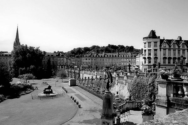 Бат считается одним из самых красивых городов Англии, именно благодаря зданиям георгианской эпохи ЮНЕСКО внесла город в список памятников культурного наследия человечества. В 1729–1736 годах Джон Вуд-старший возвел на Куин-Сквер свои первые здания георгианского стиля. Здесь же высится и его шедевр «Цирк», сооруженный по образу римского Колизея. В 1767–1775 годах тот же архитектор построил «Королевский полумесяц» – первый жилой комплекс в Англии, включавший в себя 30 домов, образующих единый фасад в форме полумесяца, – возможно, самая дорогая недвижимость в Бате, и разбил вокруг великолепный городской сад, немедленно ставший фешенебельным местом для прогулок и прославившийся большой коллекцией деревьев и цветов.