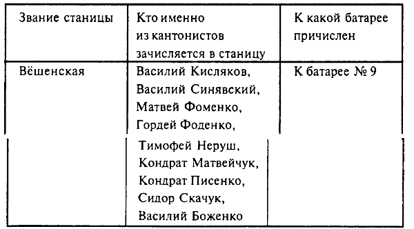 После смотра казаки разъехались по домам, а кантонистов барон Вольф расписал по станицам, где надлежало им стать костяком батарейных команд, взял список верхних страниц и против каждой карандашом проставил цифру: где — 2, где — 3; против крупнейшей на Верхнем Дону Вёшенской черкнул — 9.